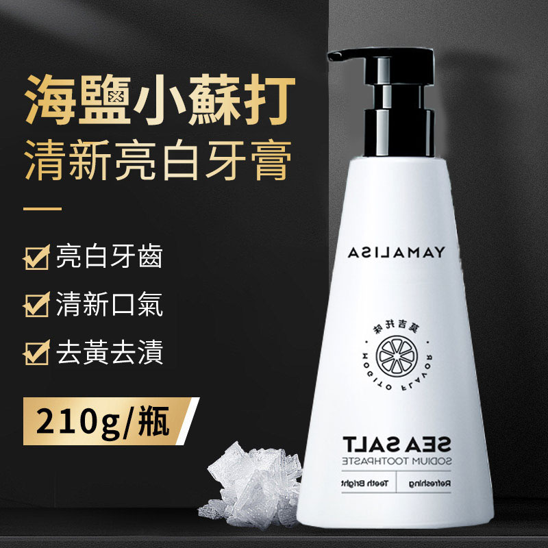 小蘇打海鹽清新亮白牙膏,去黃去黃牙漬去口臭,潔白牙齦防蛀蟲