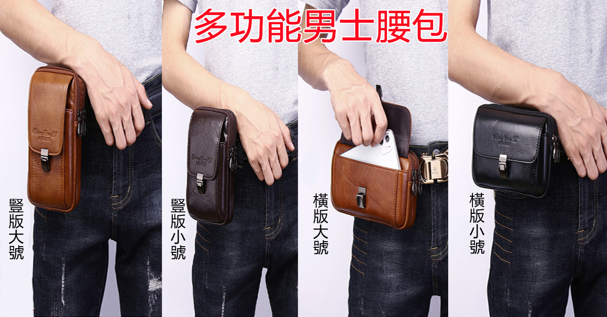 稻草人真牛皮男士腰包一折出清,下單贈送型男大禮包